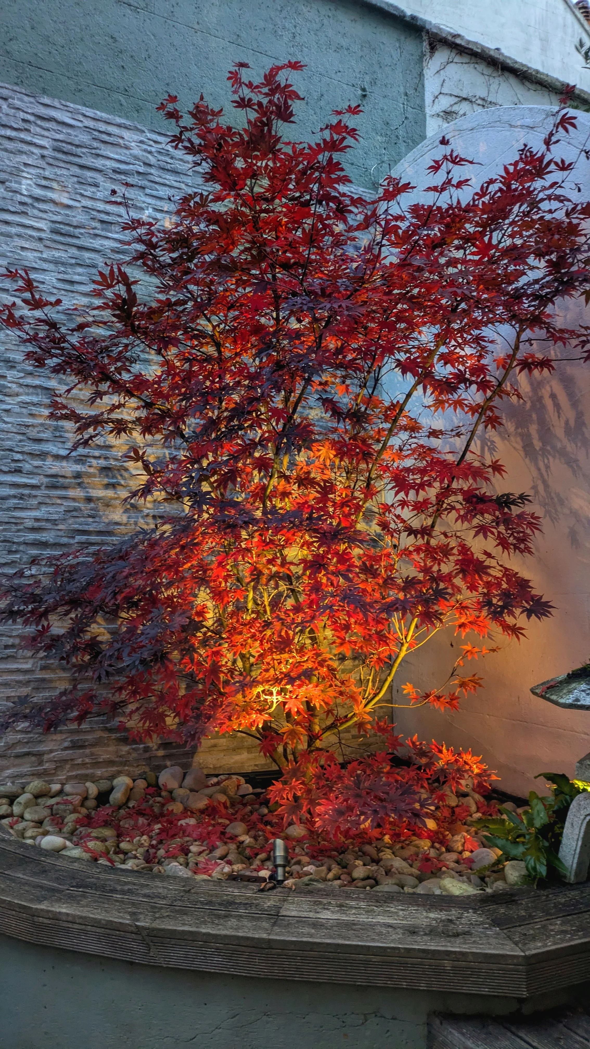 Reclaimed, authentic Japanese stonework is used to form subtle features within the plant-scape, complemented by natural pebbles that add texture and rhythm. These materials are intentionally understated, allowing the garden to feel grounded, timeless, and respectful of craft and tradition.